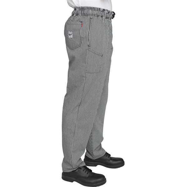 This is Le Chefs best-selling trouser for a reason! A Unisex trouser range that features hard wearing, easy care, long lasting fabric at an unbeatable price. These trousers have a self locking drawstring and have 2 side pockets, 1 phone pocket and 1 hip pocket. Black and white are made from 65% Recycled Polyester.