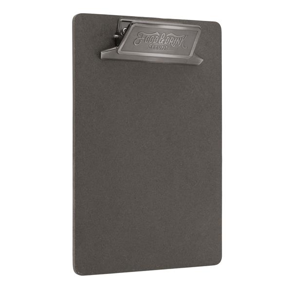 Present your menus with timeless elegance using the Securit MC-CBA5-VT Vintage A5 Menu Clipboard. Crafted from high-density fiberboard with a warm grey finish, this clipboard features a retro-style metal clip embossed with "Food & Drinks," making it an ideal choice for restaurants, cafés, and bars aiming for a classic aesthetic.