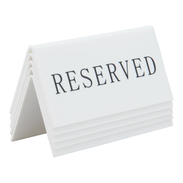 Securit® Reservation table stands with English: 'Reserved' - White Acrylic standards with black font - set of 5.