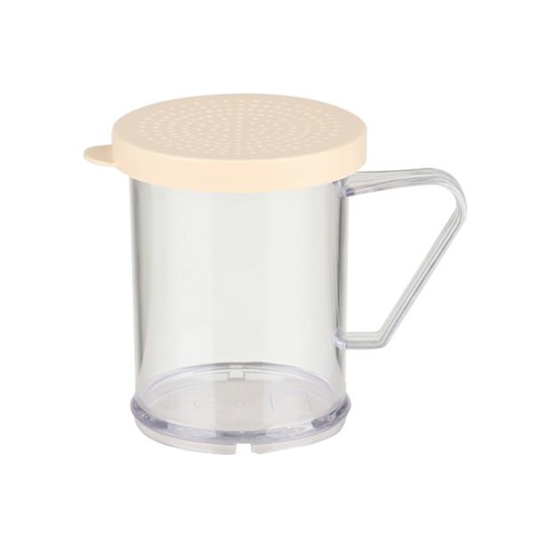 Dredger for condiments made of clear, unbreakable polycarbonate plastic. Available in different colours making it easy to identify the condiments. A staple in the kitchen or on the dining table.