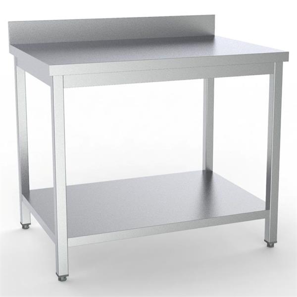 Flat packed stainless steel wall table for a commercial kitchen. Complete with undershelf and upstand.