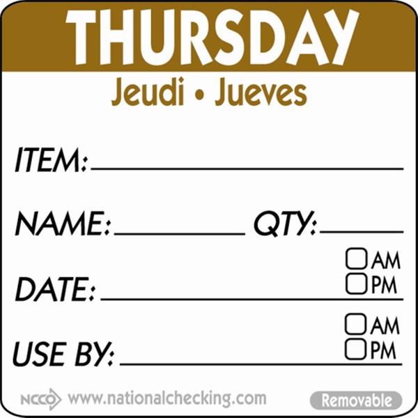 NCCO Thursday NCC Removable Day Label 50mm (500)